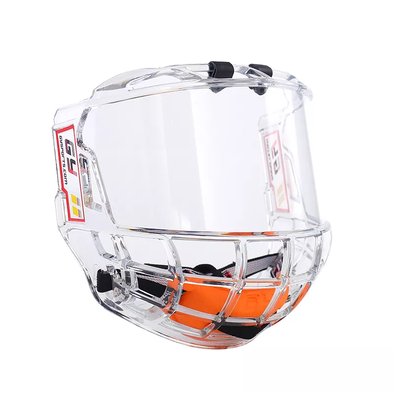 The GY-PC018-clear full face protective hockey player helmet cage crafted with high-quality polycarbonate shield and frame, this shield is built to withstand the most intense impacts in hockey, making it ideal for players of all levels.